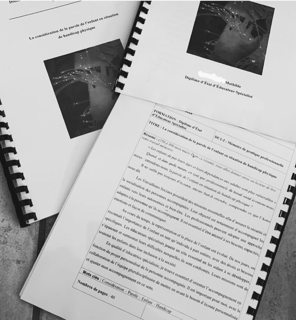 J’ai rédigé mon mémoire de pratique professionnelle sur « La considération de la parole de l’enfant en situation de handicap physique ».